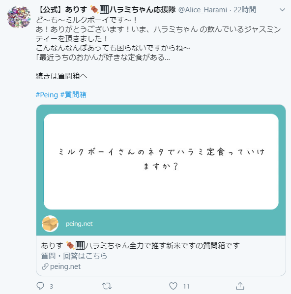 作者のお米さんは、ハラミちゃんを広く知ってもらうことを望んでいますが、 下記の点にご留意ください。