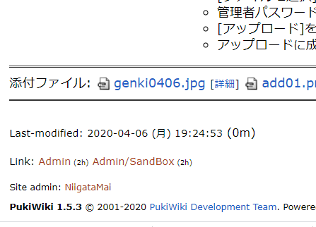 アップロードに成功すると、ページの下欄外に写真ファイル名が表示されます。
