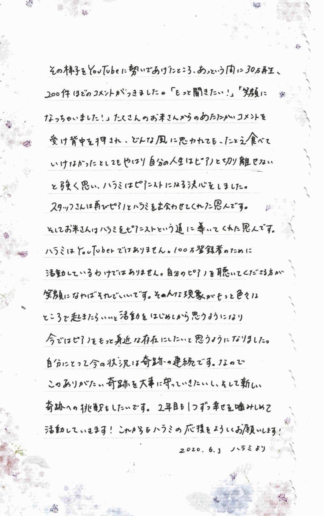 ハラミちゃんからのお手紙